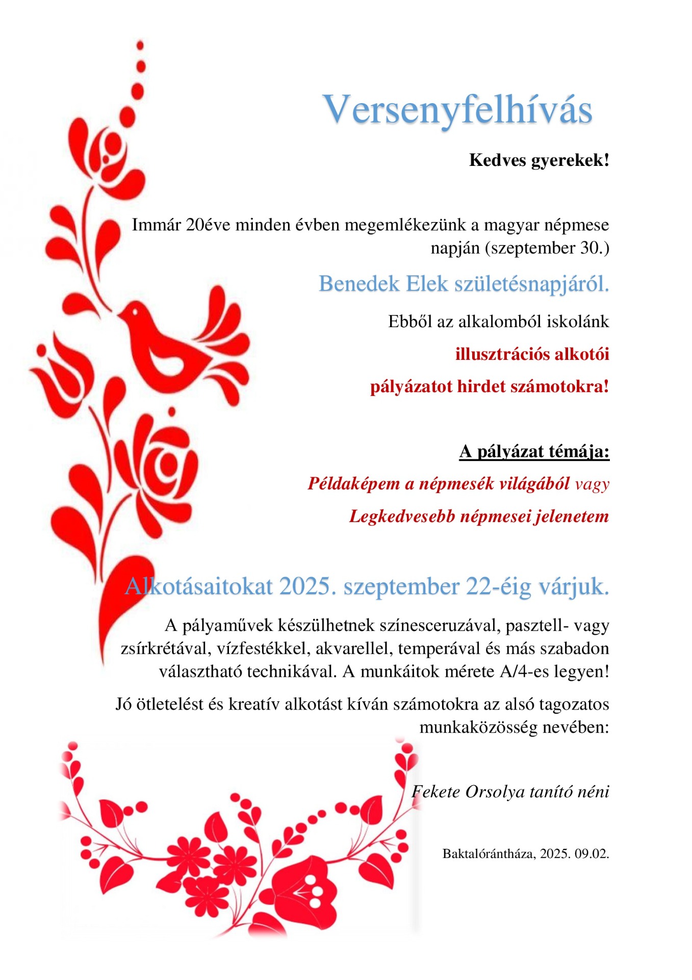Szeretettel hívunk, várunk mindenkit 2026. március 15-én ( vasárnap ), 11:00 órától Baktalórántházára, a Református templomba, ahol ünnepi istentisztelet keretében emlékezünk az 1848-as szabadságharc eseményeire.Iskolánk tanulói műsorukkal teszik még emlékezetesebbé ezen alkalmat.